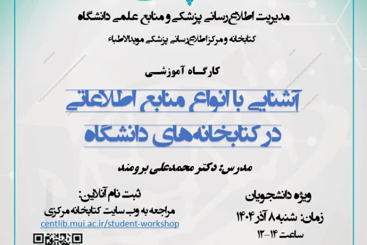 لینک ثبت نام: https://centlib.mui.ac.ir/student-workshop
