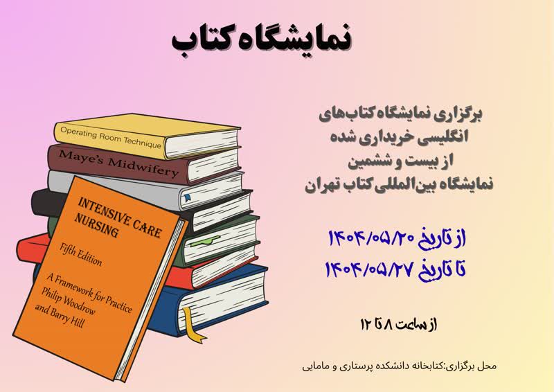 نمایشگاه کتاب زمان: دوشنبه 20 لغایت 27 مردادماه 1404ساعت: 8 - 12مکان: کتابخانه دانشکده پرستاری و مامایی