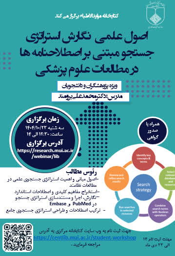 وبینار پژوهشی با عنوان اصول علمی نگارش استراتژی جستجو مبتنی بر