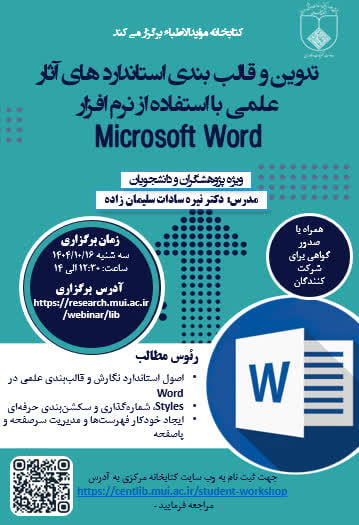 وبینار پژوهشی "تدوین و قالب بندی استانداردهای آثار علمی با استفاده از نرم افزار Microsoft Word