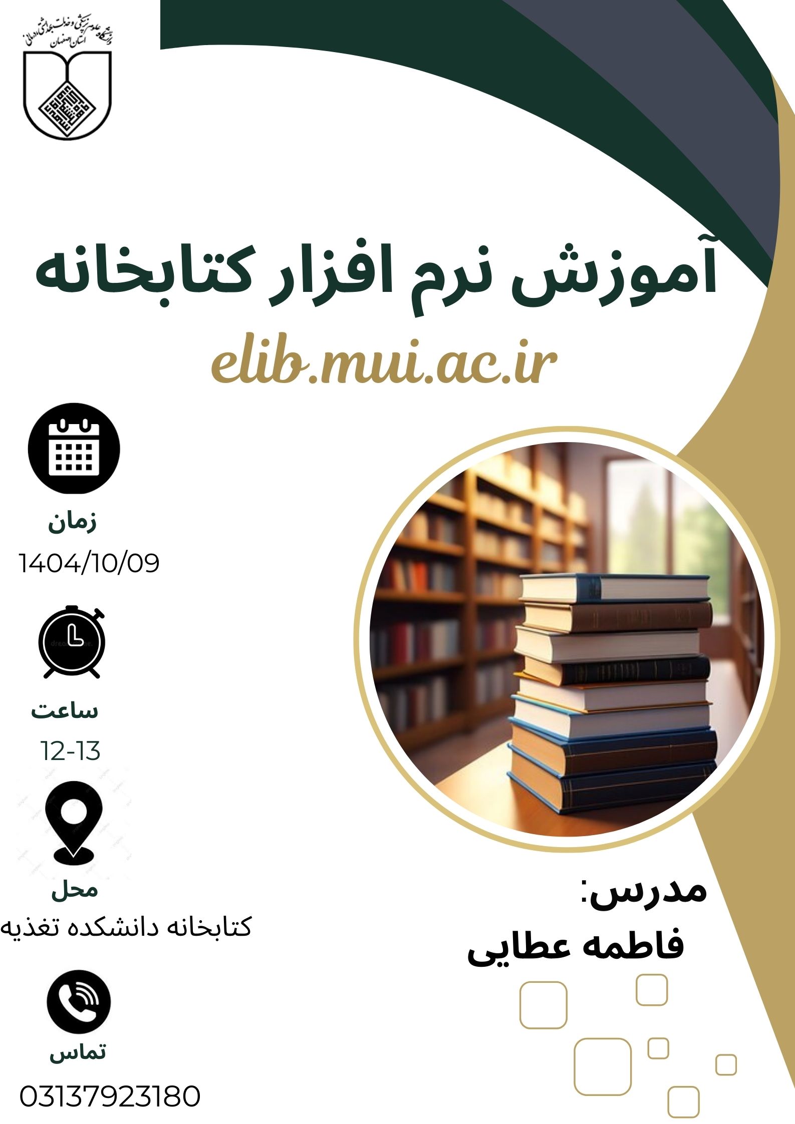 8 | آموزش نرم افزار کتابخانه | 1404/10/09 | فاطمه عطایی | کتابخانه تغذیه |